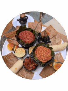 Mischung aus Leber, Herz und Magen, fein gehackt und scharf gewürzt – typisch äthiopisch.