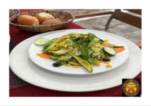 • Warm vegetable salad with onions, spices, and lemon – traditionally served.